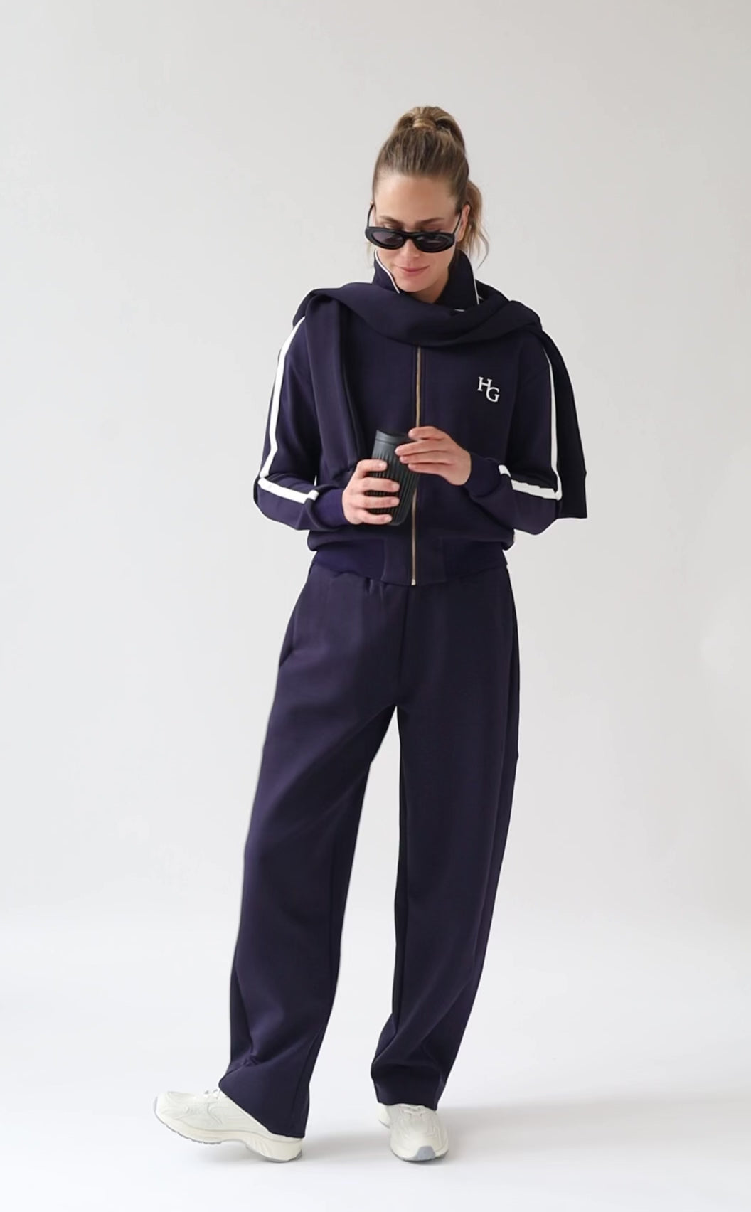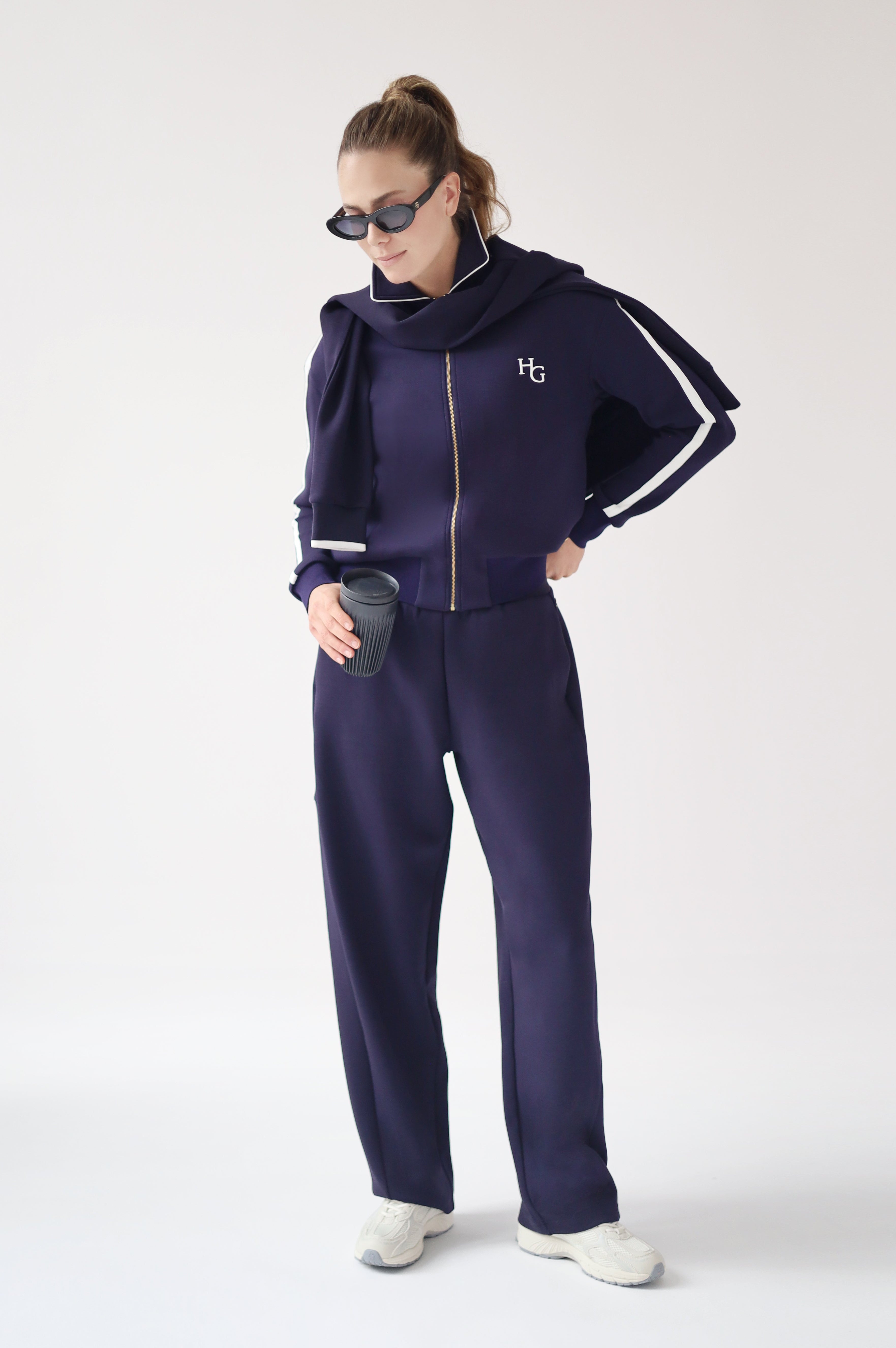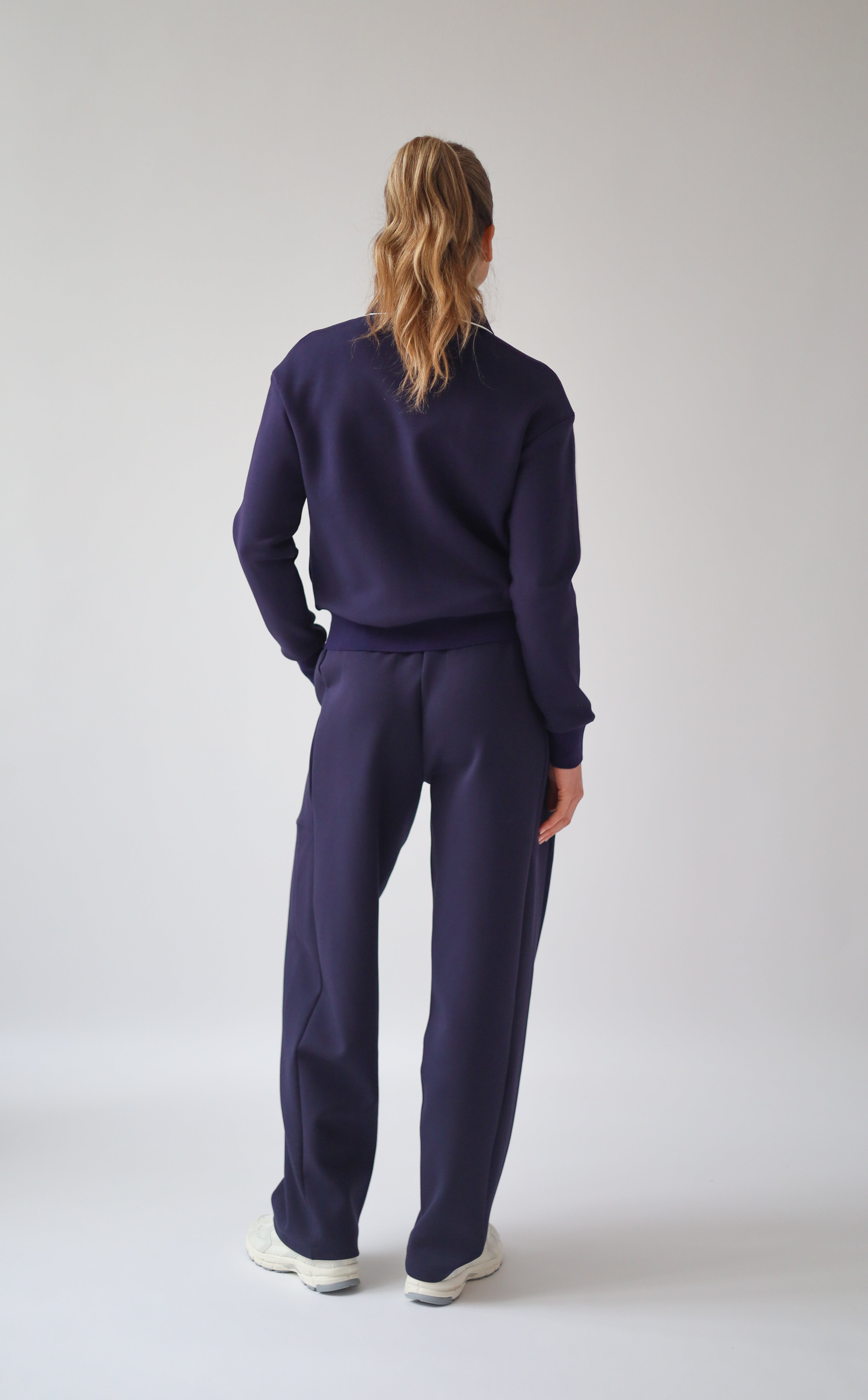 Designed with a wide fit, feminine barrel leg shape and elegant side pockets. The fabric is extremely soft, warm and stretchy. Wear it with sneakers, boots, or flats.