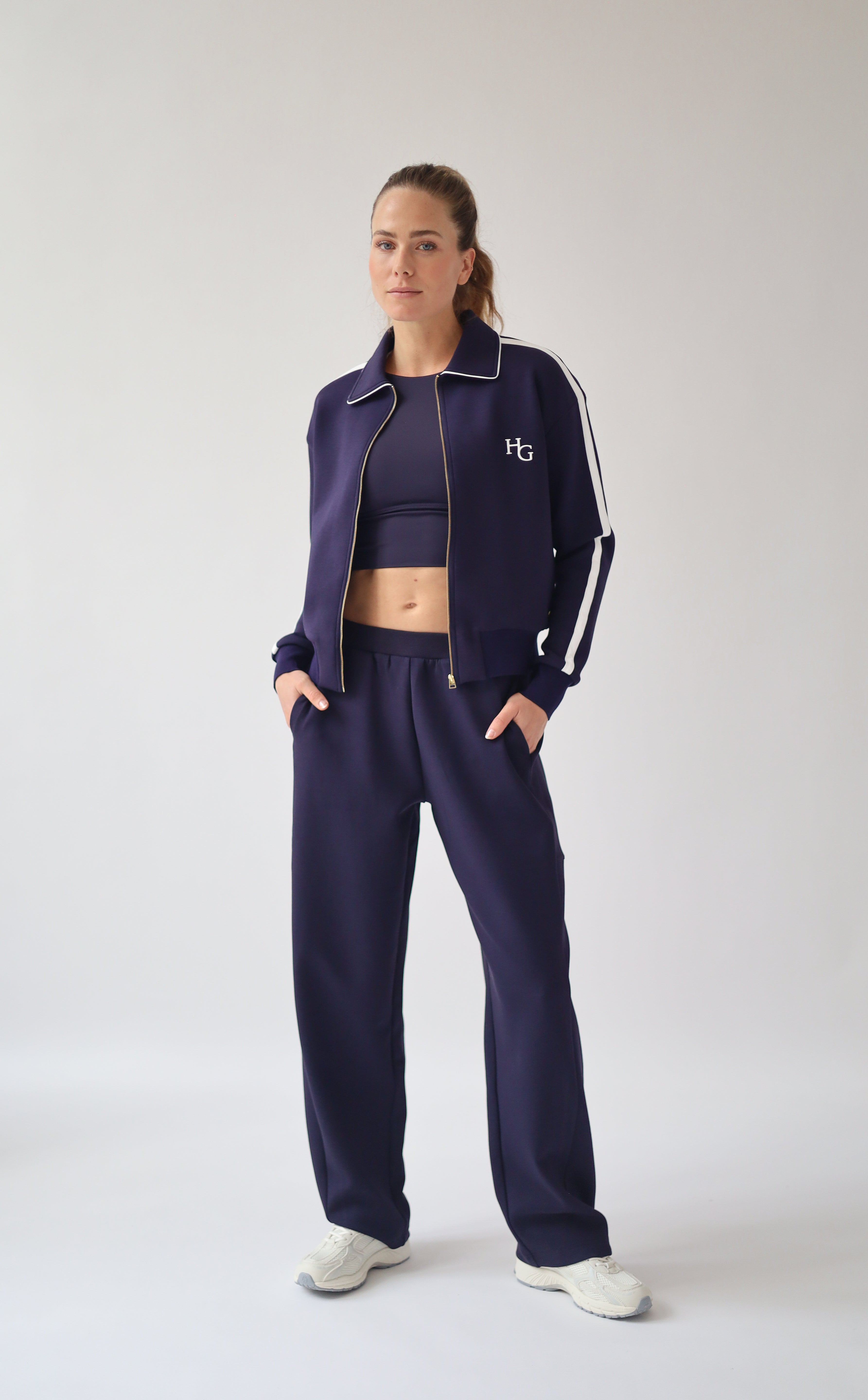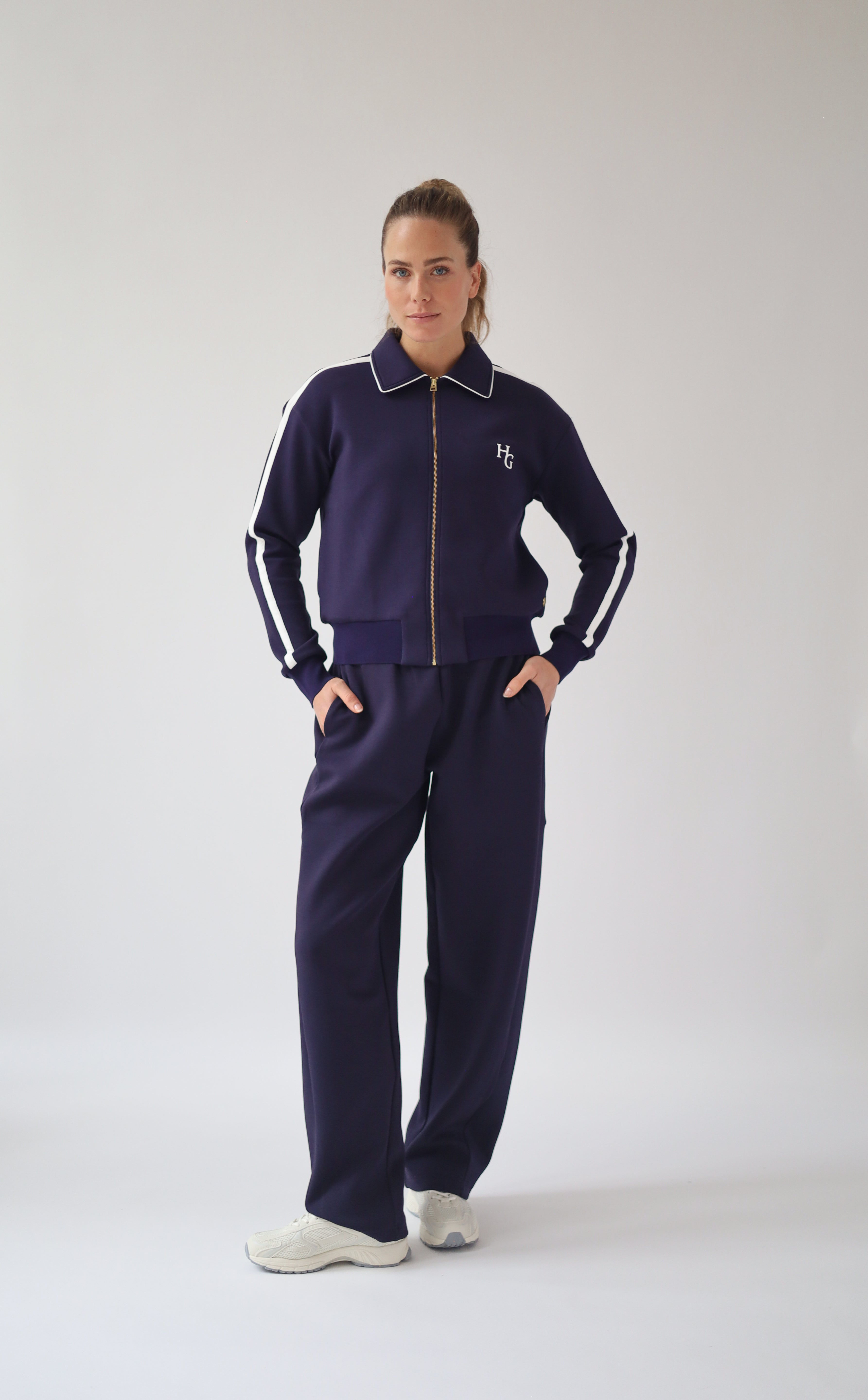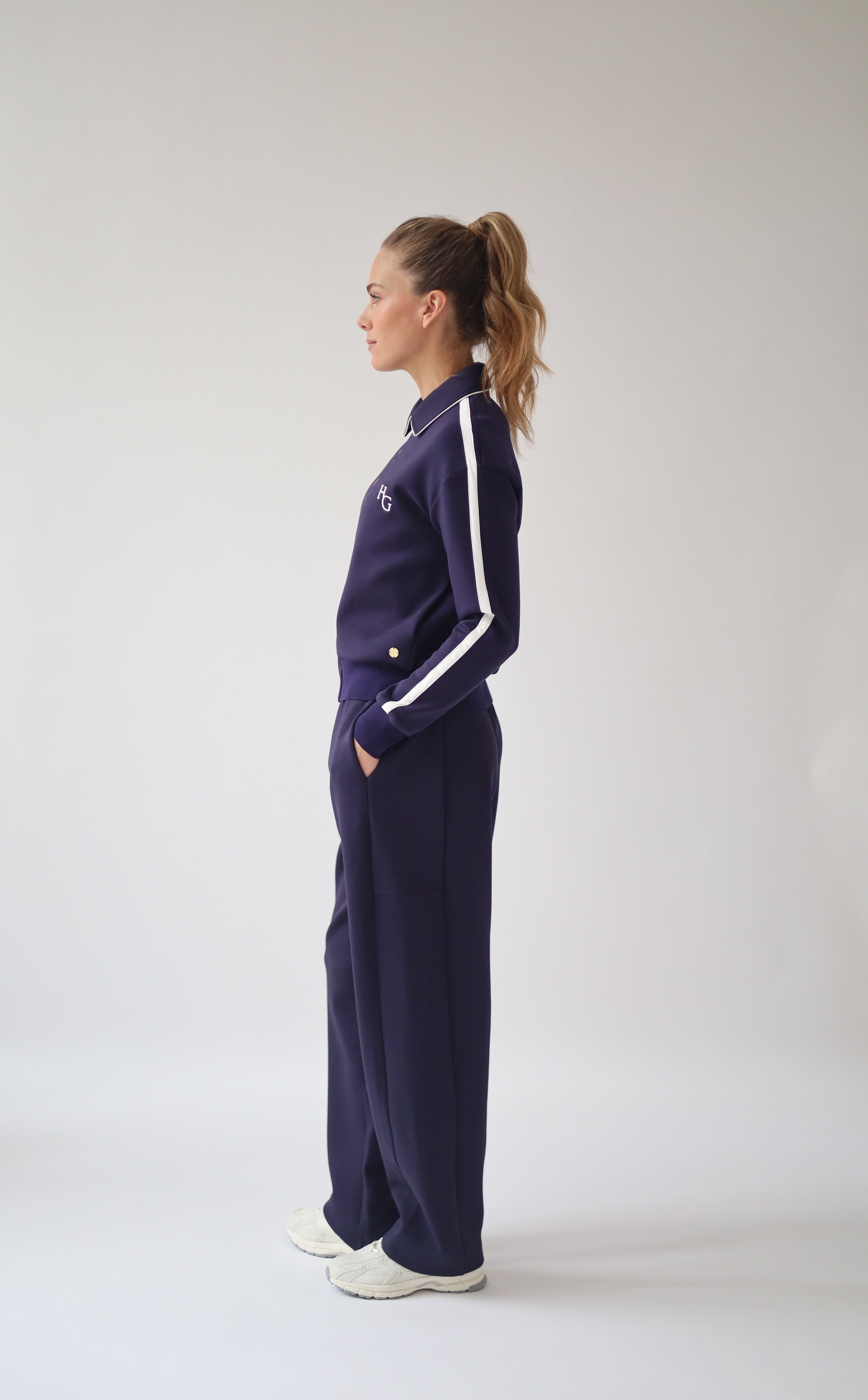 Designed with a wide fit, feminine barrel leg shape and elegant side pockets. The fabric is extremely soft, warm and stretchy. Wear it with sneakers, boots, or flats.