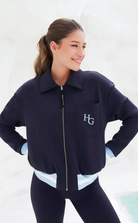 The Cardigan Jacket is made from our smooth, soft, and luxurious daywear fabric. A timeless classic with a slightly oversized and relaxed silhouette, it features high-end embroidery on the front, an elastic waistband, and side pockets for added convenience. Wear it in the city with the matching trackpants, or polish up your activewear on the way to the gym. This versatile piece adds sophistication and comfort to any wardrobe.