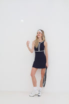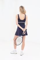 The Divine Tennis Dress is part of our Activewear & Tennis Collection, designed to elevate both your performance and style. Made from our super-soft, two-way stretch fabric, the dress features a flattering A-line shape that moves with you, providing excellent support and comfort throughout your workout or tennis match. The ultra-lightweight fabric offers a lifting and toning effect with built-in shape control, ensuring you feel confident and comfortable, no matter the intensity. This dress includes a built-in sports bra for added support, along with internal biker shorts featuring side pockets to hold tennis balls, your phone, or keys. Whether you're serving on the court or enjoying a day of leisure, the Divine Tennis Dress combines versatility, performance, and style for every active woman.