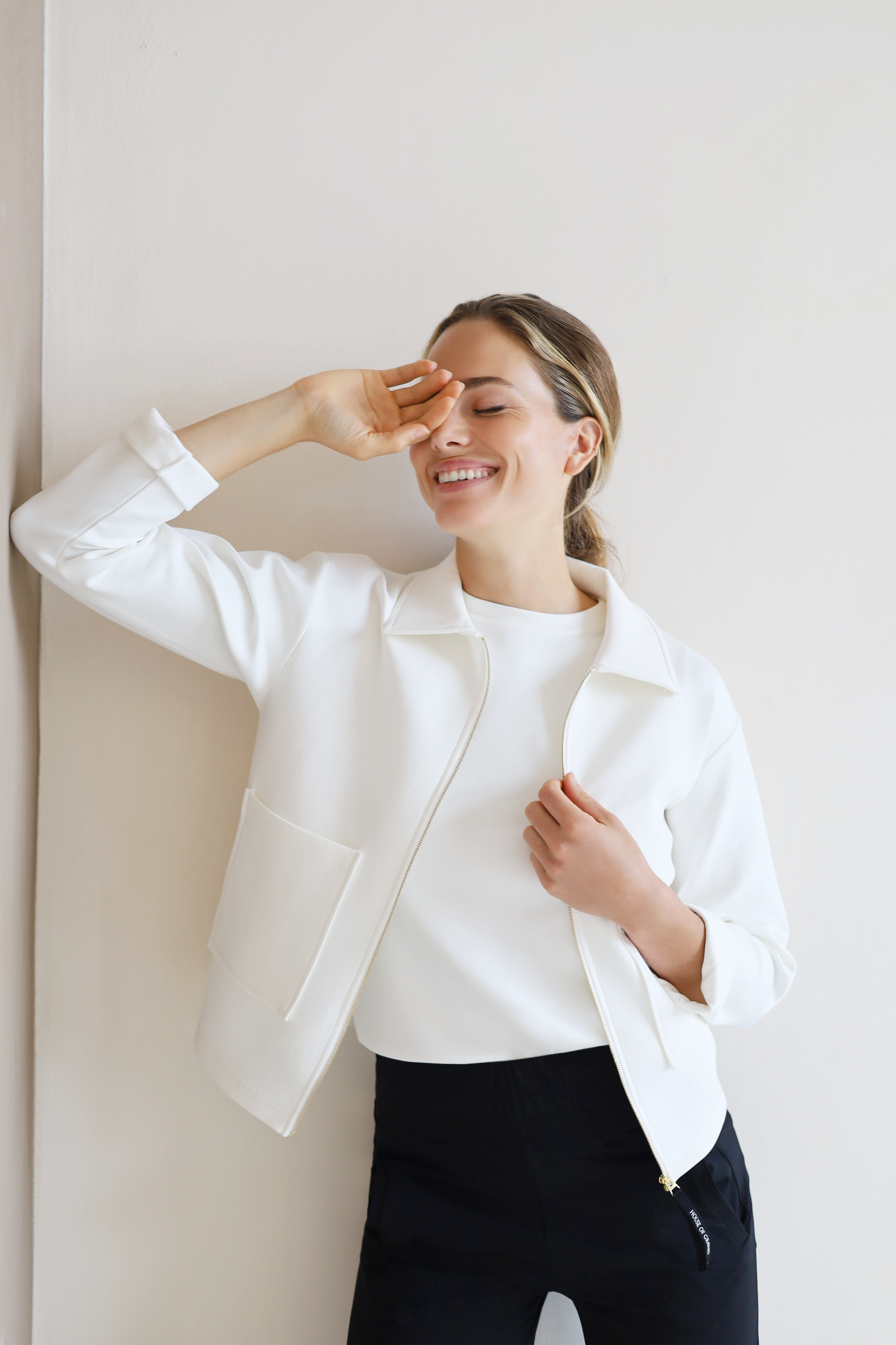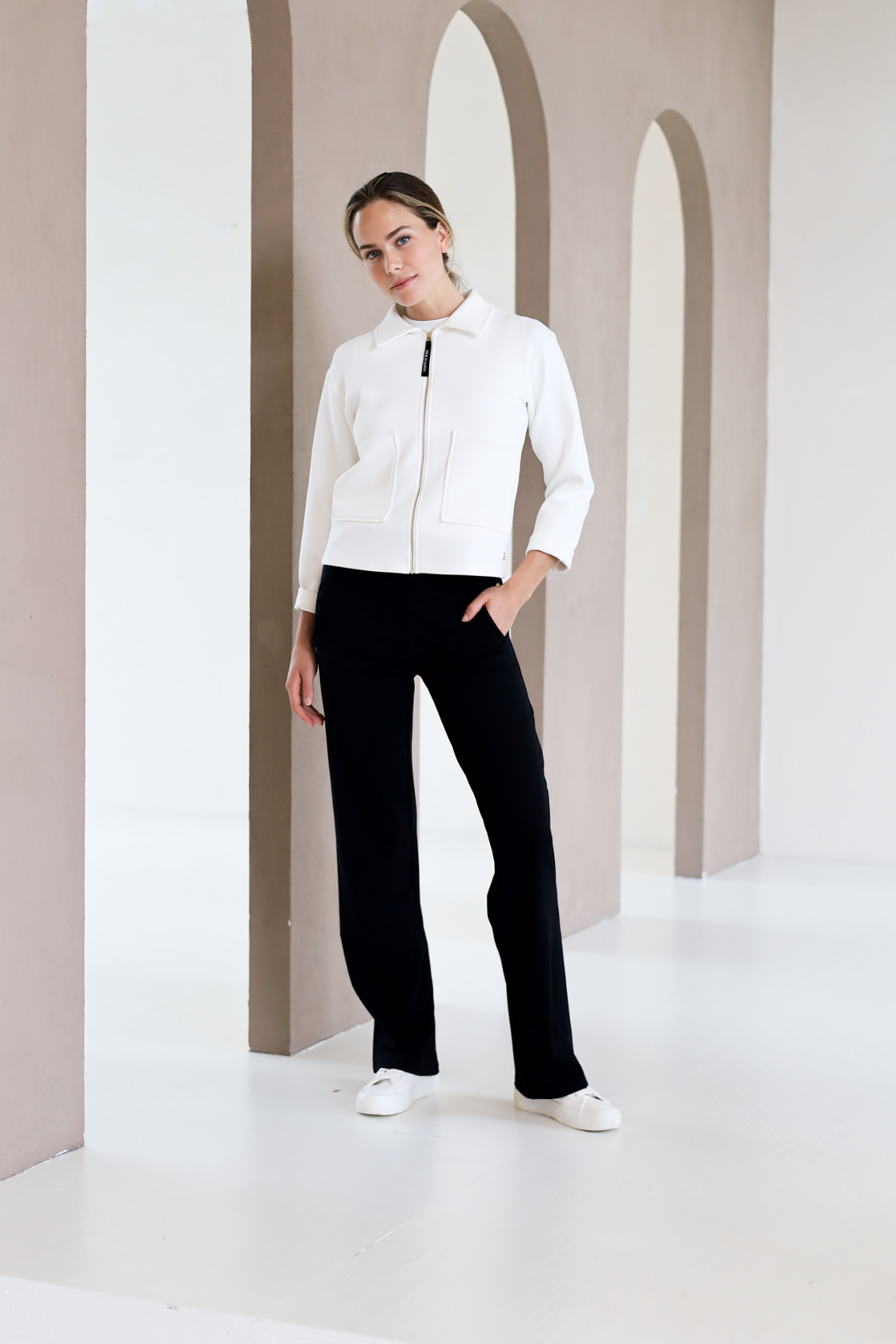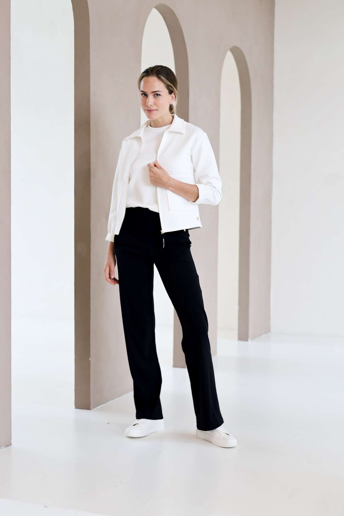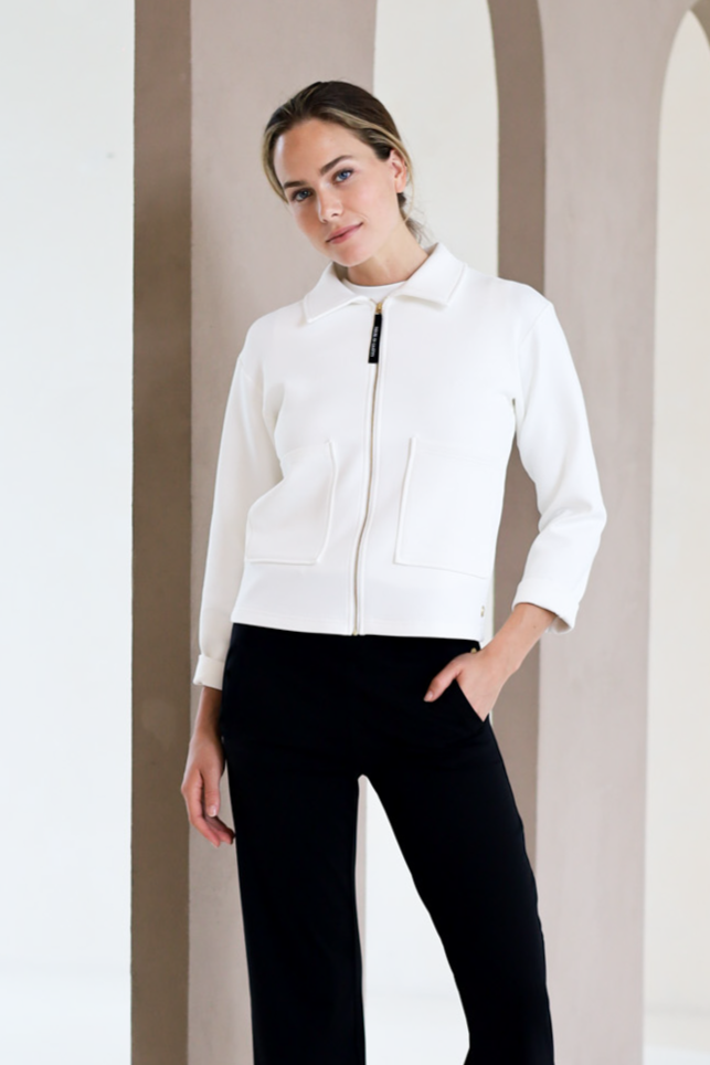 The Bomber Jacket is a versatile piece from our Daywear Collection, crafted from our smooth, soft, and luxurious fabric for a comfortable, high-end look. This timeless classic features a slightly oversized, relaxed silhouette, making it the perfect layering piece for any occasion. With premium embroidery on the front, an elastic waistband, and functional front pockets, this jacket blends style and practicality. Whether you're pairing it with chinos for a chic city look or wearing it over your activewear on the way to the gym, the Bomber Jacket adds a touch of sophistication and effortless style to any outfit.