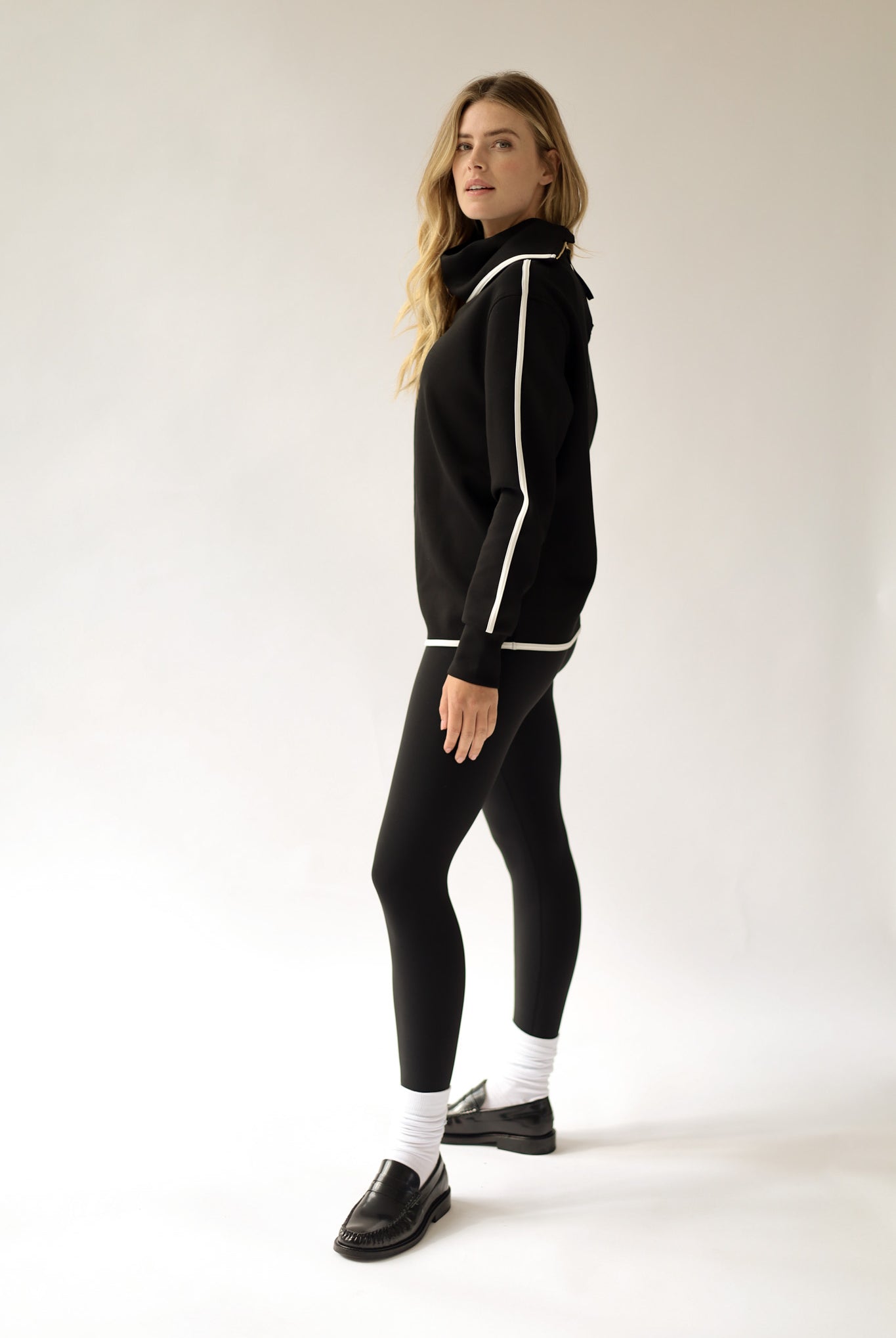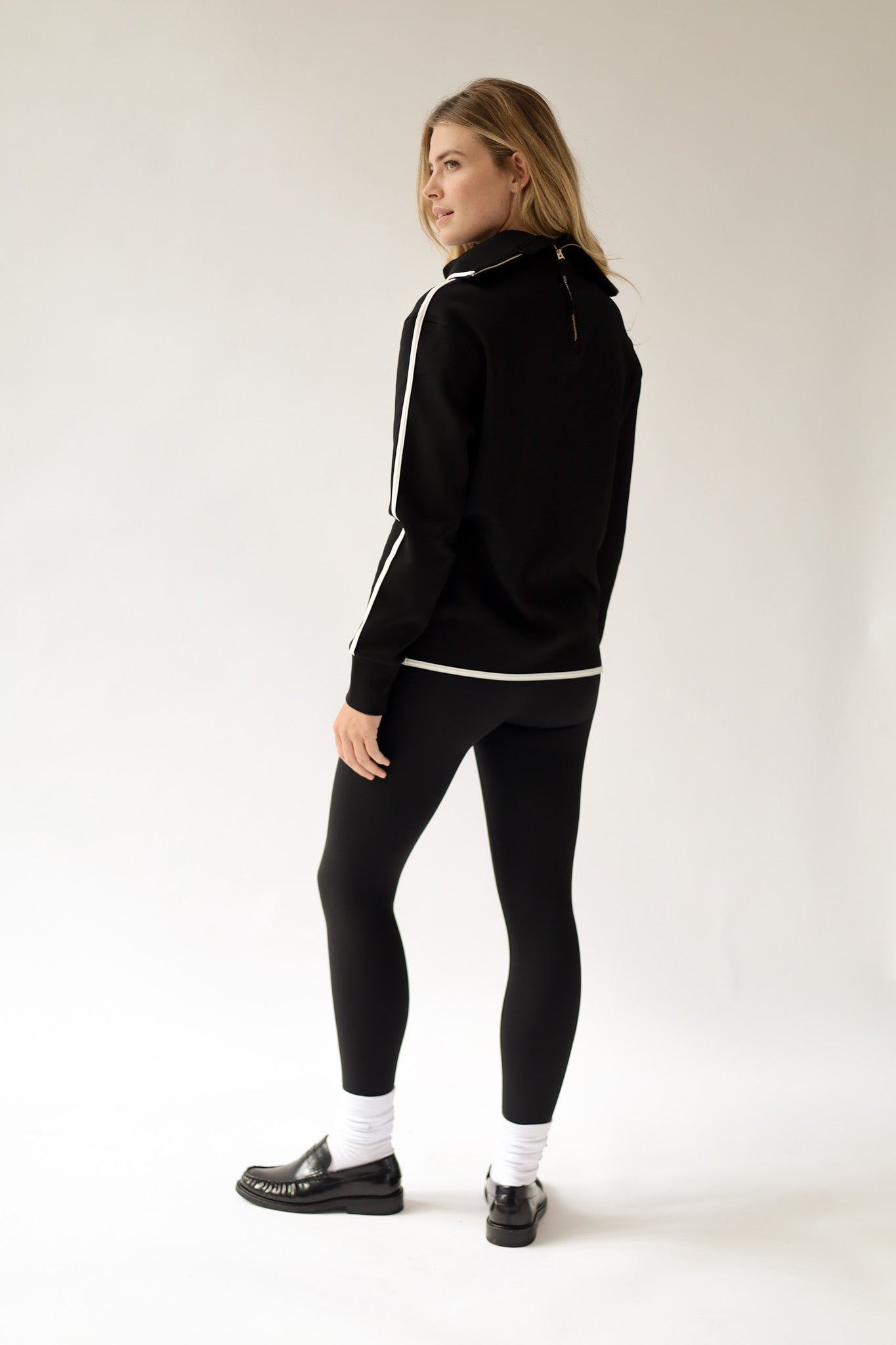 The Slim Zip Chino is part of our city collection. The chino has a comfortable elasticated high waistband and luxurious golden side zipper. The Slim Zip Chino is made from our super soft cotton daywear fabric. A classic straight leg model. The fabric is extreme soft, warm, and stretchy. Wear it during the day with sneakers or boots, or during the night with a high heel.