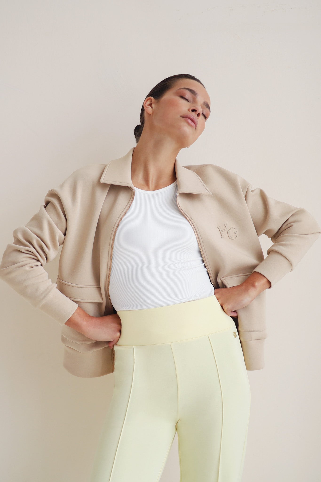 The Zip Cardigan Jacket is made from our smooth, soft and luxuries daywear fabric. A timeless classic cardigan with a relaxed silhouette. It has front pockets and a golden statement zipper. Wear it in the city with the matching legging and tank top or polish up your activewear on the way to the gym.