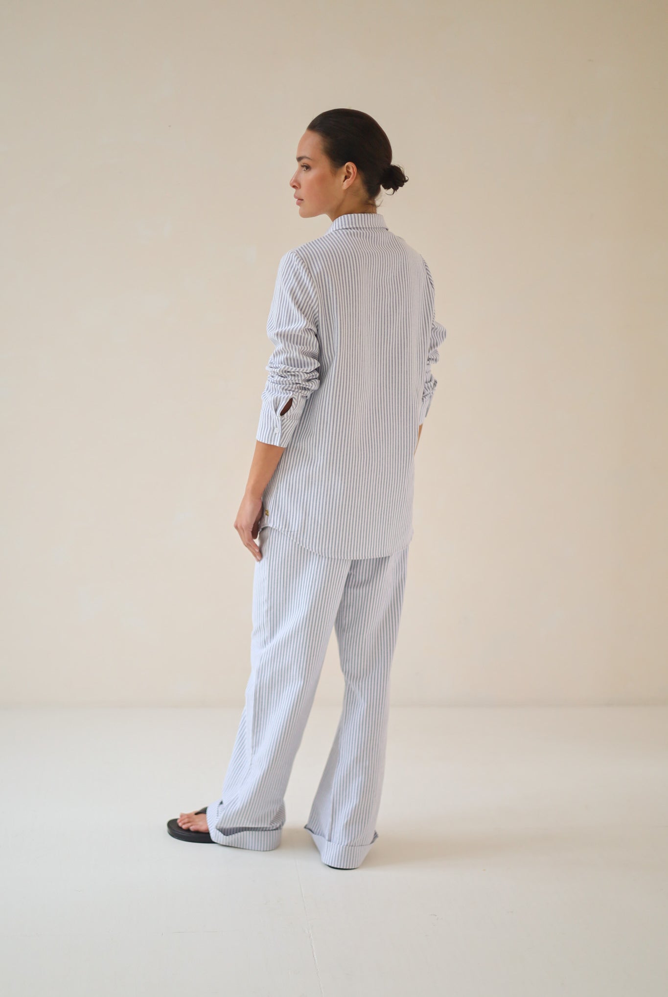 The Resort Stripe Blouse is part of our City Collection. Made from lightweight, breathable cotton daywear fabric, this blouse features a relaxed, slightly oversized fit for effortless elegance. Designed to be worn alone or as a matching set with the Resort Stripe Trouser—perfect for warm days, laid-back moments, or dressed up with a heel. A versatile piece that flows with you throughout the day.
